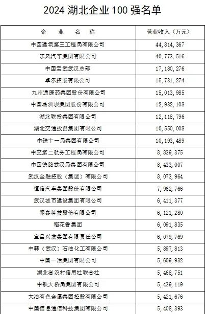 当天,湖北省企业联合会、湖北省企业家协会还发布湖北制造业企业100强、湖北服务业企业100强名单。
